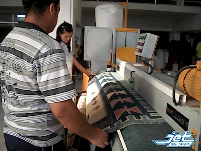 Tamamen kuruyan halılarınız tüy alma ünitesinde özel vakumlama ve fırçalama tekniği ile kabartılarak tüylerinden arındırılır. Ardından halılarınız parfümlenerek ambalajlama aşamasına getirilir.